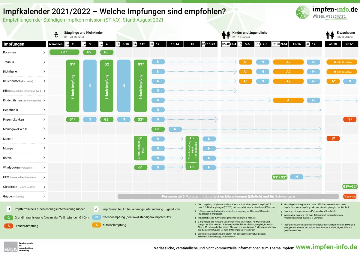 Impfkalender 2021/2022 – Empfehlungen der STIKO